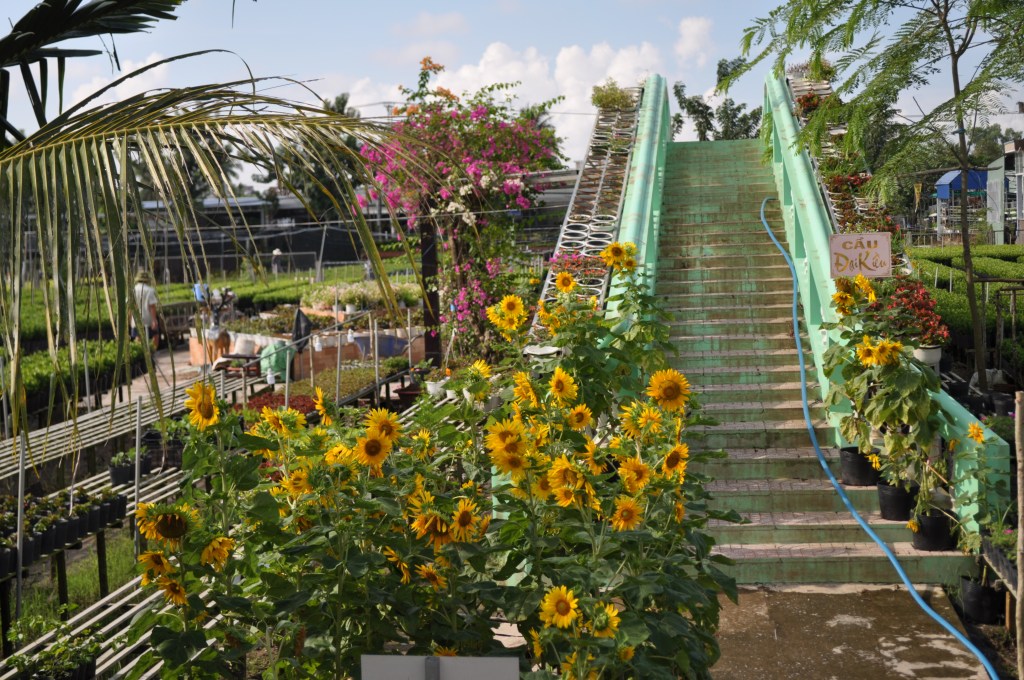 I have long dreamed of traveling to Sadec to see the town where Marguerite Duras grew up and wrote about in her novel The Lover. This is the town where in real life she fell in love with an ethnic Chinese Vietnamese man, about whom she’d write in the novel. I had always imagined the town as a small and ramshackle, and the guidebook suggested that there was not much to see there. Sadec is a lively and beautiful city on the river. The main industry is flowers. Green houses abound, small and large, over tiny canals. One recently has the city identified Duras as a tourist attraction. They’ve partially restored a section of the lover’s home. His family was the wealthiest in town, and when the left during the revolution the land estate was parceled out and part of the home became a police station. The house is also the only place in Vietnam where it is legal to screen the film version of the The Lover, which is too racey for the censors here.