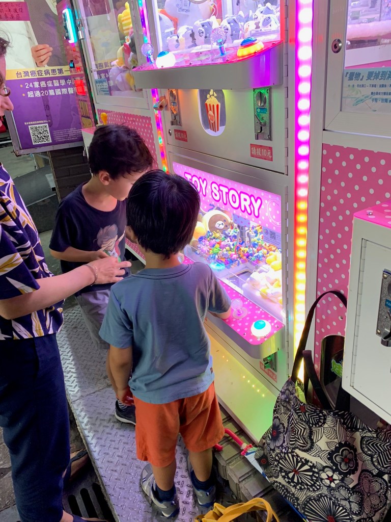 Arcades: Ben and the kids discovered their shared joy of these games. You can’t win by lifting the claw up, but have to strategize knocking things around and shaking the claw. At one arcade a teenager noticed us eyeing his technique and won two nice gifts for the kids. This one was a fail, but at the pokeman machine by our apartment we won 20 figurines over our 6 days there.