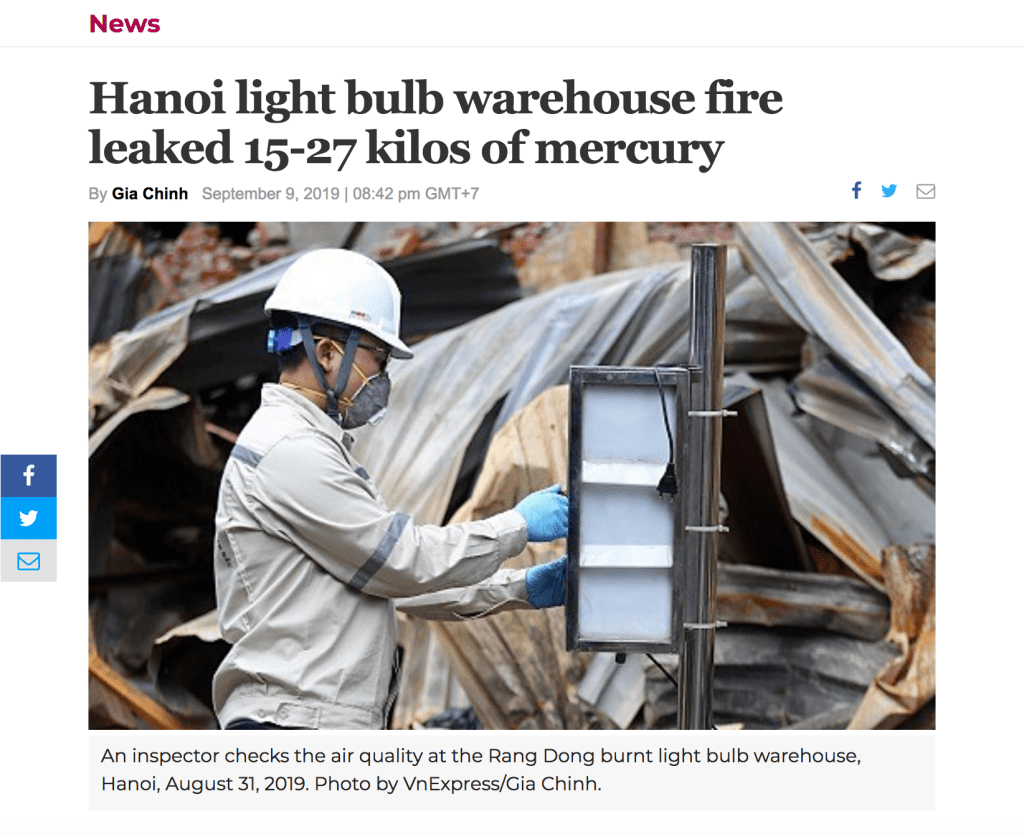 Mercury: On August 28th the Rang Dong Light Bulb factory caught fire. Residents were told to evacuate and then not to evacuate. The factory said they no longer used mercury in the manufacturing of the light bulbs and then admitted a few days later they indeed used mercury. As anxious westerners became hysterical on social media, we avoided the area, but wanted to believe the factory. No one was to consume food sold in the area for a period of one month. Then word broke over a week later that there indeed had been mercury. The first seed of doubt was planted: How was one to know?
