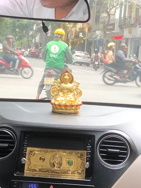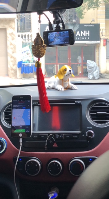 In lieu of an overdue post about our travels to Thailand and Singapore, I bring you the dashboards of Grab and taxi drivers around Hanoi.