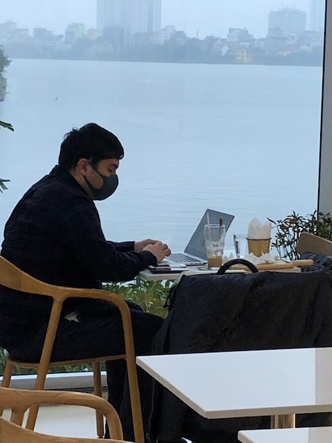We’ve returned to Hanoi to discover a new normal. A city in which people were once reluctant to wear pollution masks is now masked. At our favorite cafe folks work away with covered faces.